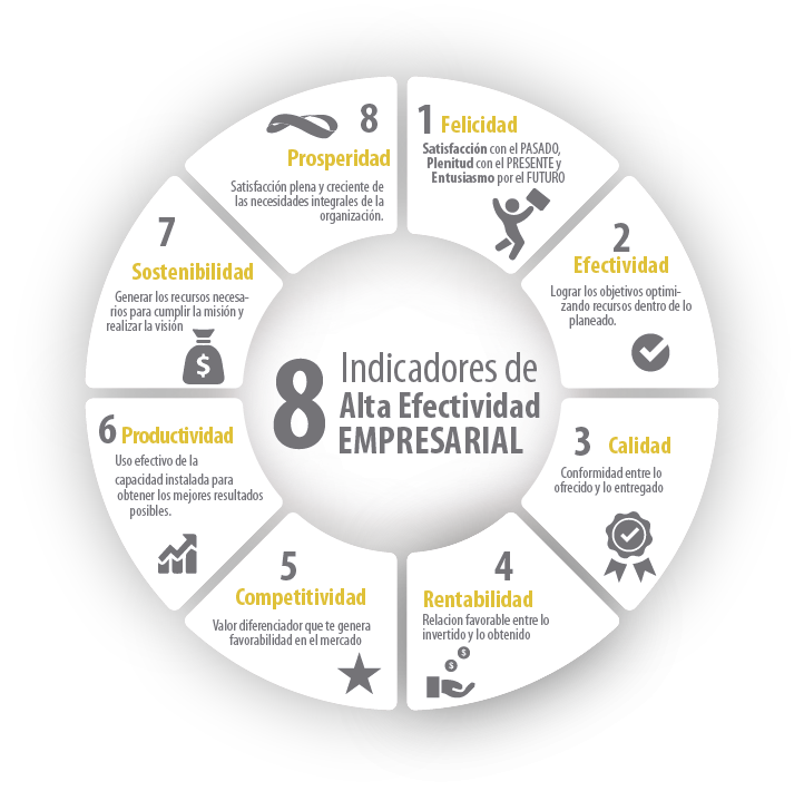 ¿Qué es y cómo se miden y desarrollan en una empresa los indicadores de: Felicidad, Productividad, Efectividad, Calidad, Rentabilidad, Competitividad, Sostenibilidad y Prosperidad?